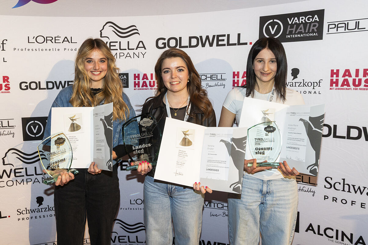 Den Landessieg im 3. Lehrjahr und damit einen Toyota Yaris für ein Jahr sicherte sich Verena Gruber aus Aschau im Zillertal, die ihre Lehre bei „dm friseurstudio“ absolviert. Den zweiten Platz erreichte Andrea Hechenberger aus Jochberg vom Ausbildungsbetrieb „Plan P – hair, nails & style“. Auf Platz drei folgte Anna Gschwendtner aus Going von Lehrbetrieb „Styleeffect Sabine Obwaller“.